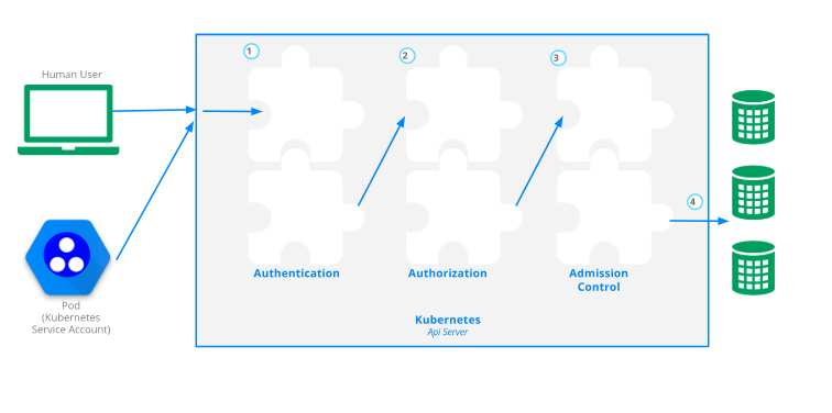 在Kubernetes集群中,API Server是集群管理API的入口,由运行在Master节点上的一个名为kube-apiserver的进程提供的服务。 用户进入API可以通过kubectl、客户端库或者http rest,User 或者 Service Account可以被授权进入API。当一个请求到达API时, 往往要经过几个阶段的安全控制,在一个典型的应用集群中,API Server通常会使用自签名的证书提供HTTPS服务,同时开启认证与授权等安全机制。